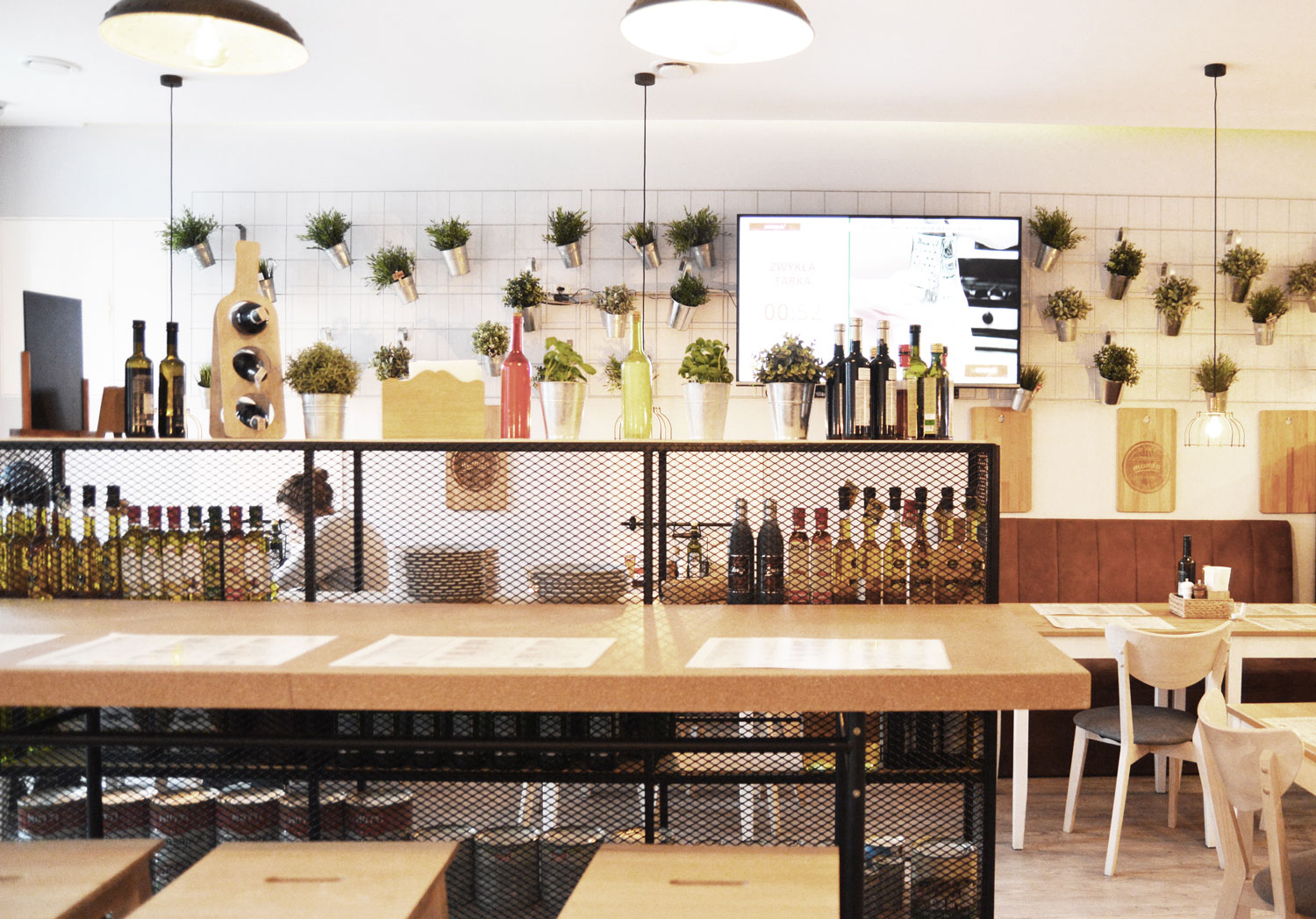 Projekt pizzerii zlokalizowanej w sercu miasta Kartuzy. W lokalu panuje przyjazna, domowa atmosfera. Na ścianach oraz ladzie barowej zastosowane zostało surowe drewno, które dopełniają zielone akcenty. W samym środku przestrzeni został zaprojektowany moduł z industrialna ścianka oraz stołem barowym, dzięki temu przestrzeń została podzielona tworząc bardziej intymną i komfortową atmosferę dla klientów.