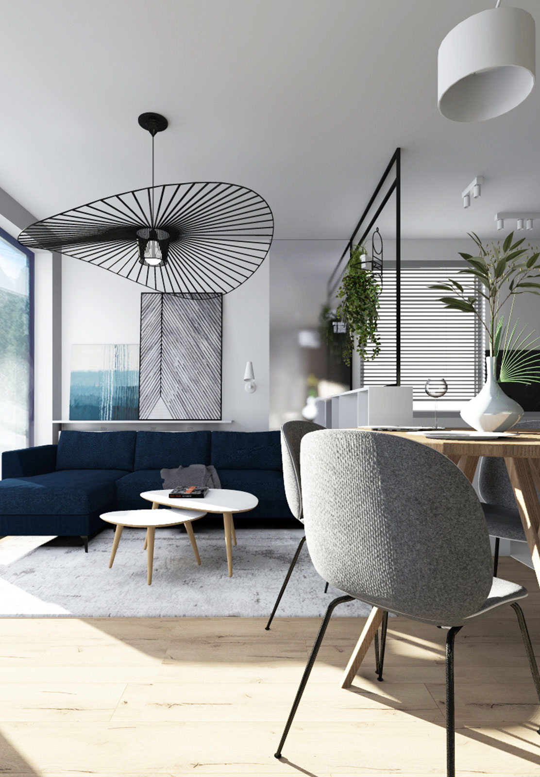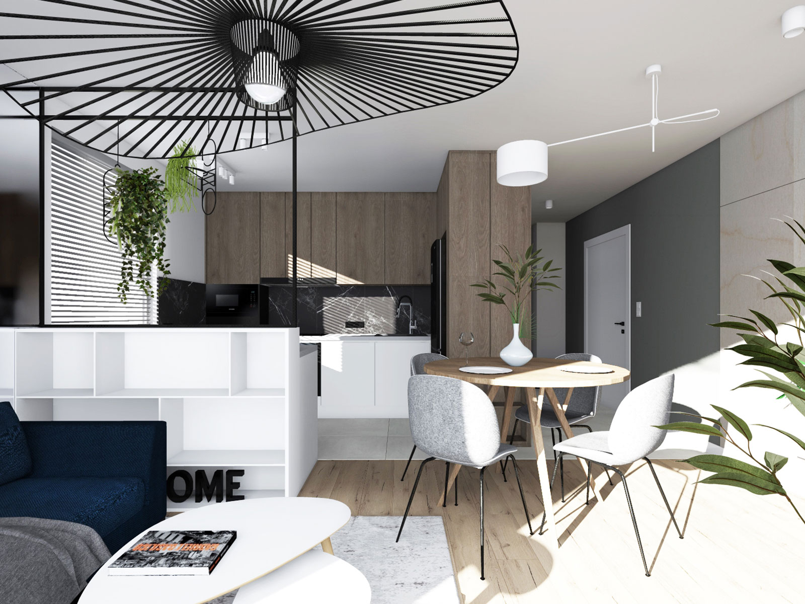 Mieszkanie w ponad czasowej aranżacji, z akcentami w postaci głębokich kolorów. Całość dopełniają detale o industrialnym charakterze. Wnętrze bardzo przytulne, stworzone dla rodziny z dziećmi.